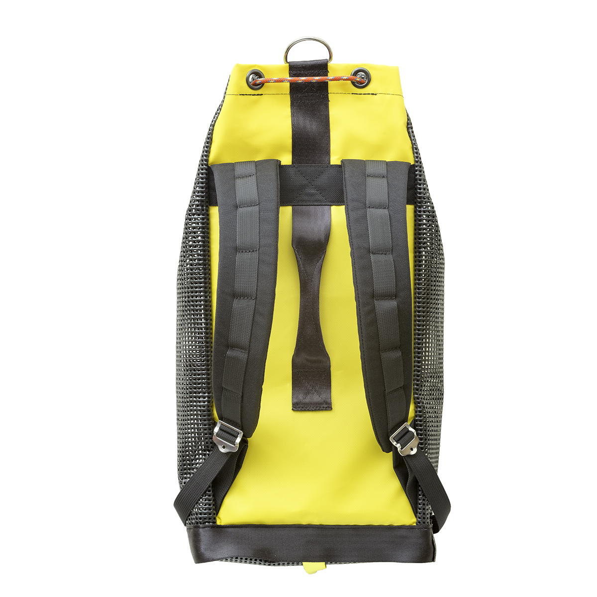 The main design focus of this bag is as a ‘working’ rope bag with colour coded webbing tie in points for easy identification of the top and bottom rope ends. The heavy duty PVC coated mesh front panel combined with the foam stiffened back panel ensures the bag remains open for efficient repacking of the rope. The foam back panel and shoulder straps provide comfort as well as ensuring the bag floats when empty.
